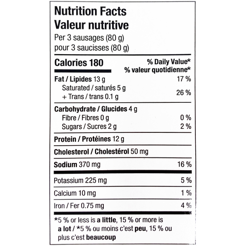 - Per: 3 sausages (80 g)
