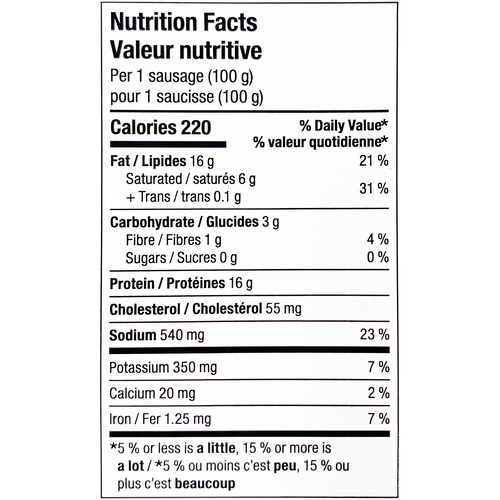 - Per: 1 sausage (100 g)