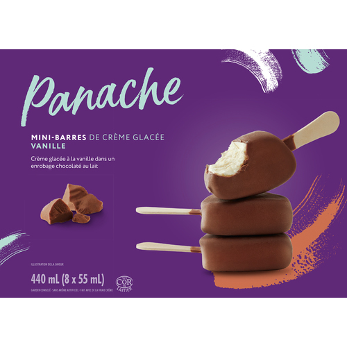 CRÈME GLACÉE : CRÈME # LAIT # SUCRES (SUCRE, SOLIDES DE GLUCOSE, DEXTROSE) # SUBSTANCES LAITIÈRES MODIFIÉES (LAIT) #POUDRE DE LAIT ÉCRÉMÉ # GOMME DE CAROUBE # MONO- ET DIGLYCÉRIDES # ARÔME NATUREL # GOMME DE GUAR # CARRAGHÉNINE # CURCUMA # ROCOU ENROBAGE CHOCOLATÉ AU LAIT : SUCRE # HUILE DE COCO # HUILE DE FÈVE DE SOYA # POUDRE DE LAIT ENTIER # CHOCOLAT NON SUCRÉ # POUDRE DE BABEURRE (LAIT) #BEURRE DE CACAO # LÉCITHINE DE SOYA # ARÔME NATUREL PEUT CONTENIR : OEUF # ARACHIDES #NOIX # BLÉ